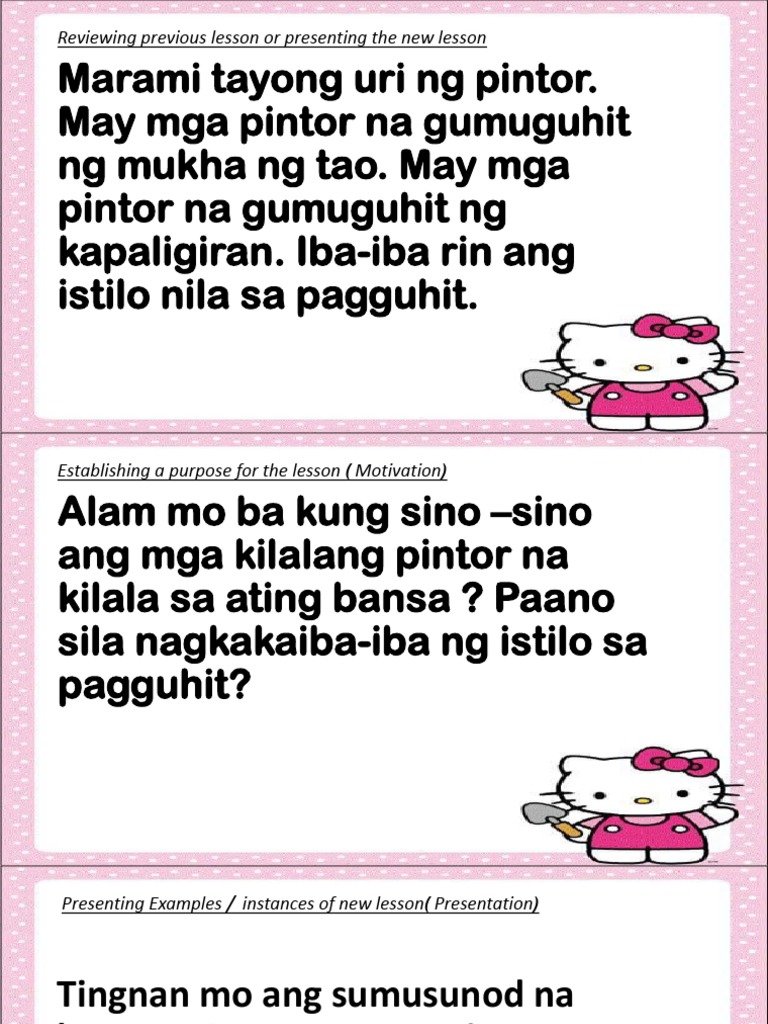 Magandang hapon mga anak. At mahalaga rin na marunong ang mga guro na maisakatuparan ang kanyang layunin sa paraang hindi maisasantabi ang kakayahan interes at lebel ng kahandaan ng mag-aaral. Mas gusto basahin at isulat sa halip na makinig.