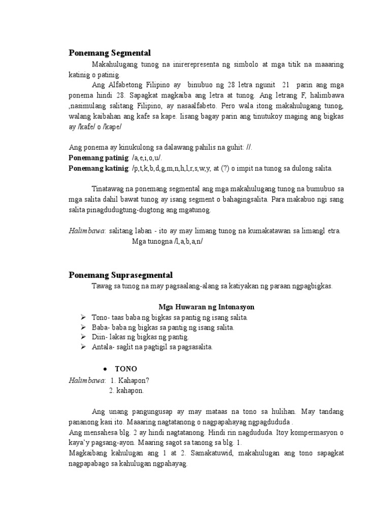 Ponemang Suprasegmental Diin Filipino 9 Maihs Facebook