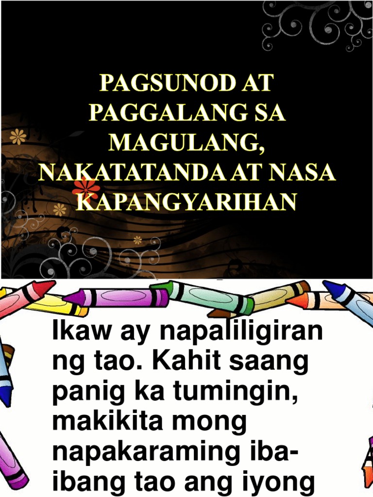 Gumawa Ng Slogan Tungkol Sa Paggalang At Pagsunod Sa Mga Magulang Nakatatanda At May Awtoridad