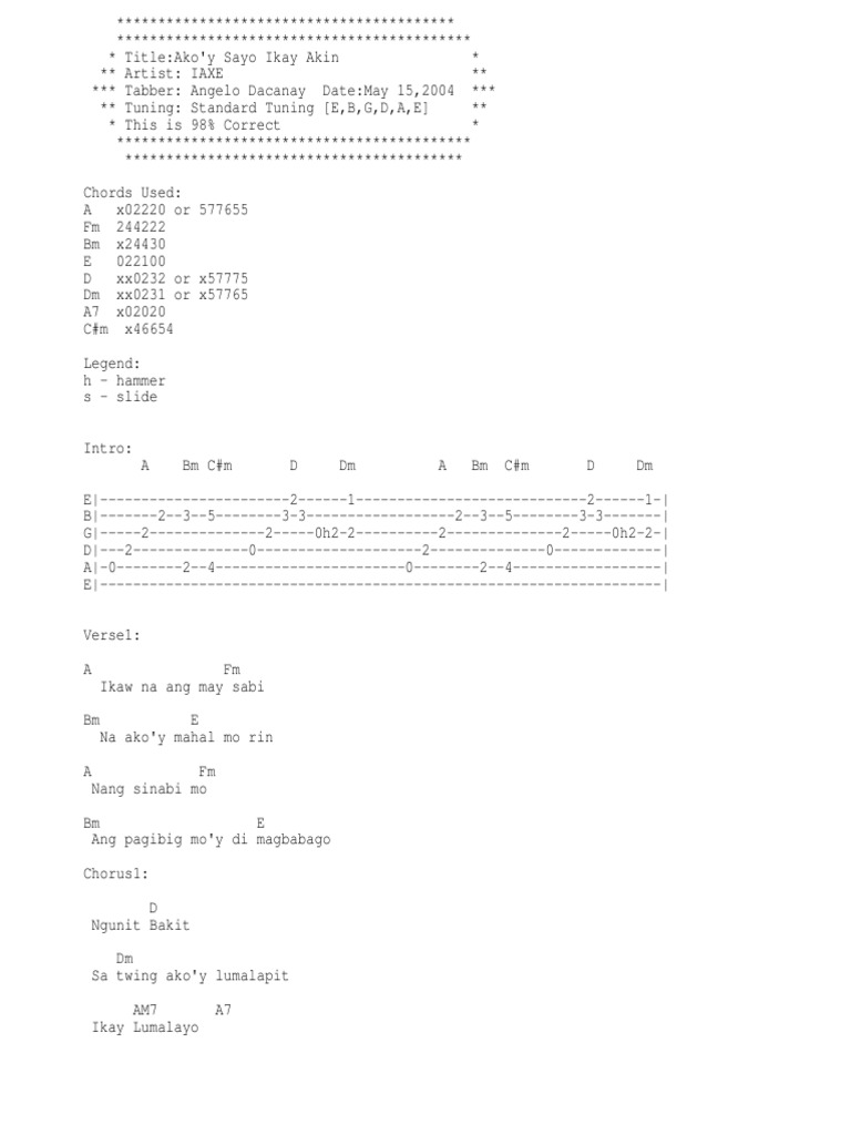 IAXE Akoy sayo ikay akin lamang chords guitar tutorial. Intro Amaj7 - Bm - Cm - Dmaj7 - Dm x2 Verse 1 Amaj7 Fm7 - Bm7 Ikaw na ang may sabi E Na akoy mahal mo rin A Fm7 - Bm7 Ang sinabi mong E Ang pag-ibig moy di magbabago Refrain D Dm A - A7 Ngunit. Create and get 5 IQ.