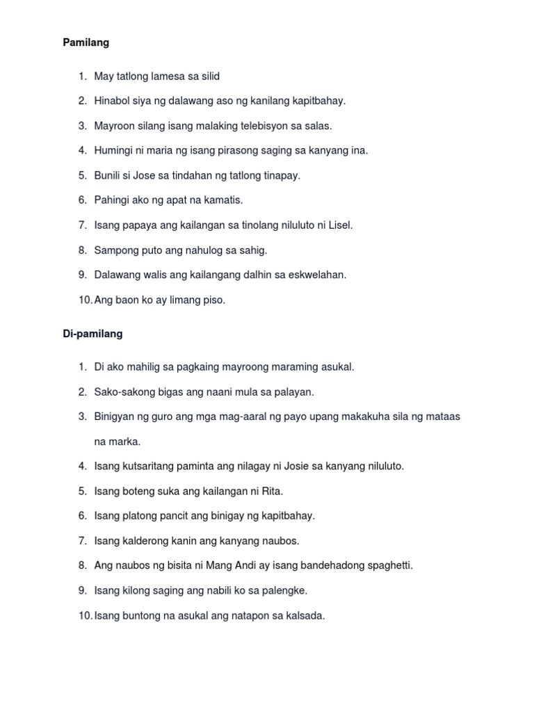 Ano ang pamilang na pangungusap. URI NG PANG-URING PAMILANG. Ang mga salita tulad ng marami o onti ay hindi kabilang sa pamilang na pangungusap dahil.