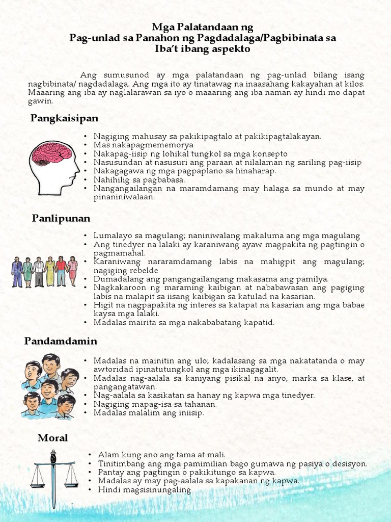 Mga Palatandaan Ng Pag Unlad Bilang Isang Nagbibinata Nagdadalaga Pdf